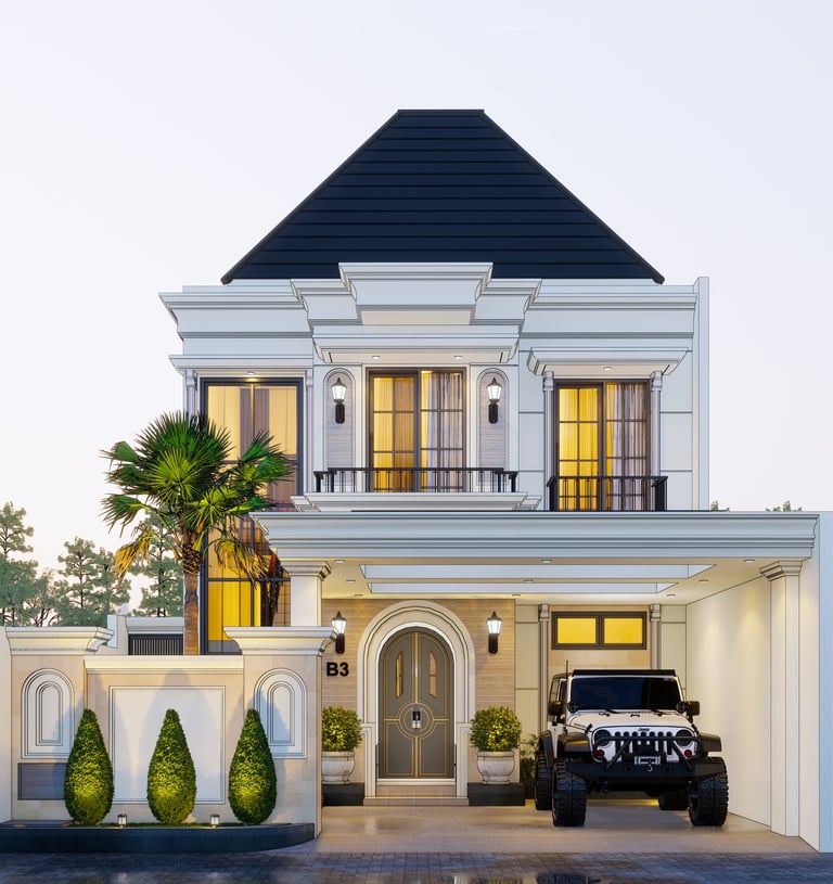 Tinggal dekat kota, desain klasik mewah, ada kolam & fasum masjid.
