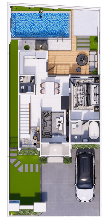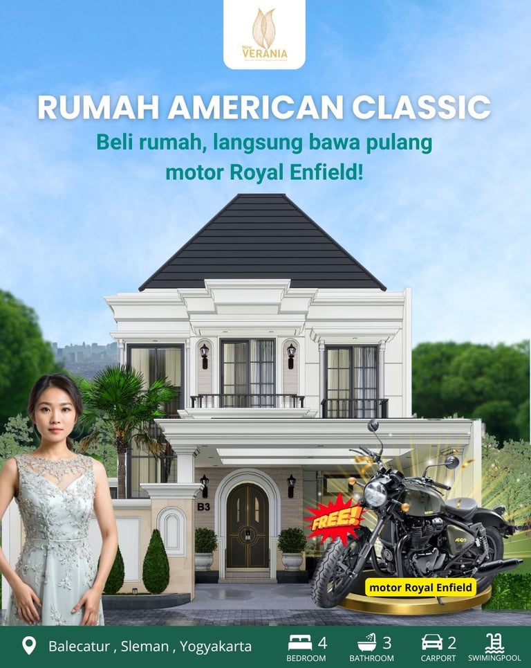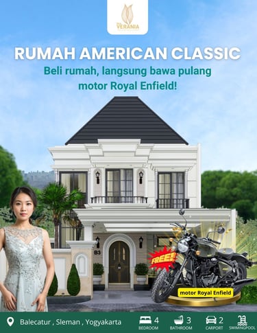 Desain rumah American Classic di cluster New Verania mengusung gaya elegan dan timeless, dengan ciri khas fasad simetris, pilar megah, dan jendela berbingkai lebar. Interiornya mengutamakan kenyamanan, dengan detail ornamen klasik yang dipadukan dengan sentuhan modern, menciptakan suasana hangat dan mewah yang cocok untuk hunian keluarga.